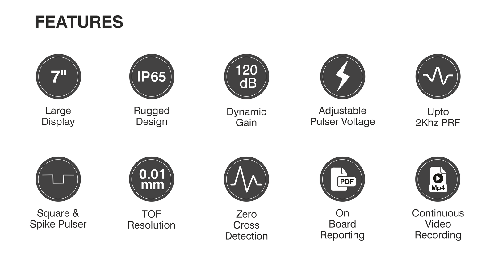 Features such as DAC, TCG, Universal DGS, FlexiDGS, AWS, video recording along with square & spike pulser, high PRF, variable pulser voltage and a 120dB gain, ensure adherence to various international testing standards.
